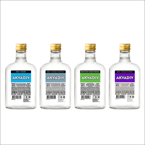 Мини водка 0,25 л 40% 38% в элегантных бутылках производитель водки "аквадив Серебряная" аквадив василки "водочный напиток